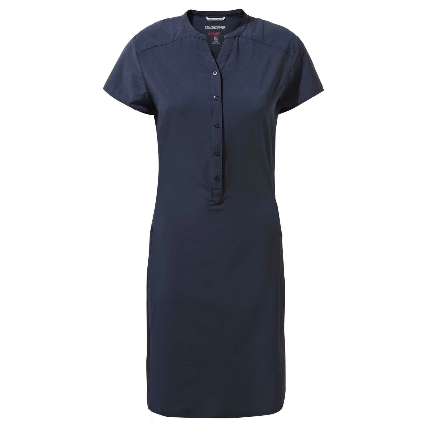De Craghoppers NosiLife Pro jurk voor dames is gemaakt van lichtgewicht stretchmateriaal wat ook nog ademend en vochtafvoerend is. Daarnaast is de NosiLife technologie toegepast in het materiaal wat beschermt tegen muggen en andere stekende insecten. De technologie gaat levenslang mee. Dit jurkje is ideaal voor op reis, het materiaal is namelijk sneldrogend en hoeft niet gestreken te worden. De taille is deels elastisch en er zijn twee zakken aanwezig.