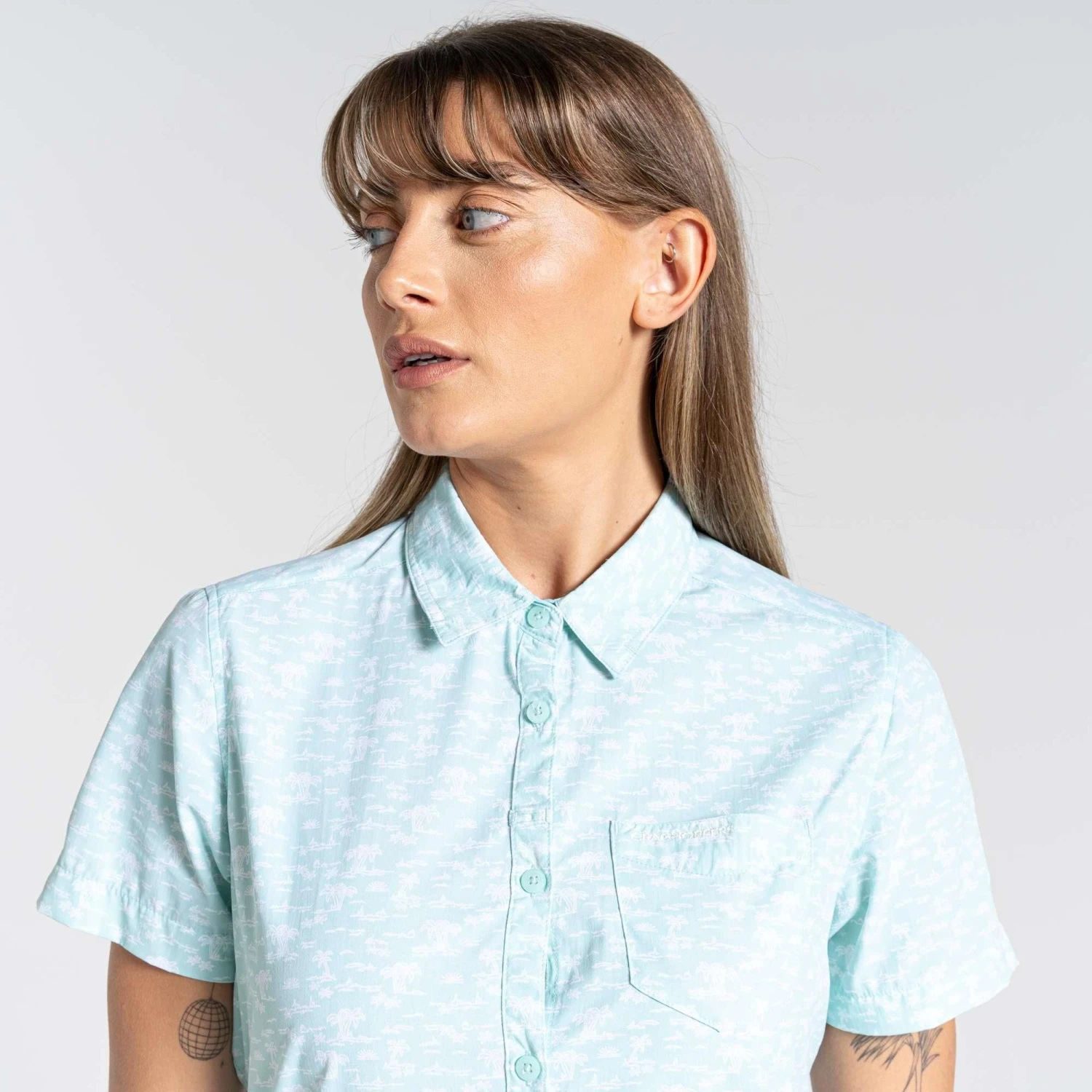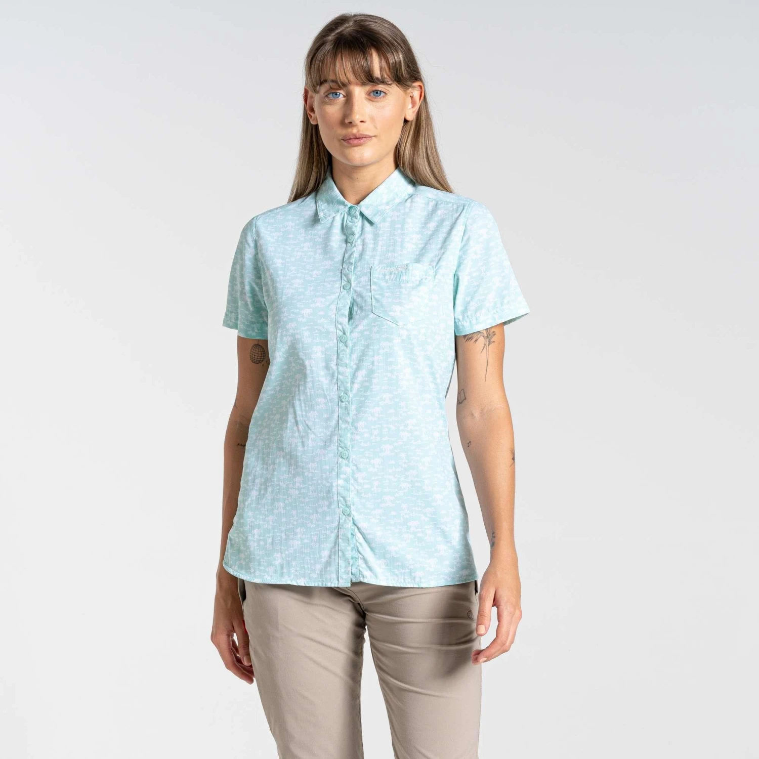 De Craghoppers NosiLife Pro IV blouse voor dames is door de NosiLife technologie insectenwerend. Deze bijzondere technologie is verwerkt in het materiaal en gaat levenslang mee. De Solar Shield technologie is in de kraag en nek toegepast en biedt bescherming tegen schadelijke uv-straling. Het stretchmateriaal is lichtgewicht, compact op te vouwen, strijkvrij en het voorkomt nare geurtjes. In de blouse zitten twee borstzakken met knoopsluiting en een verborgen zak aan de zijkant die een rits heeft.