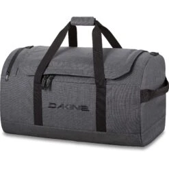 De Dakine EQ Duffle 70L reistas in de kleur carbon is een grote duffel van waterafstotend materiaal. Deze Dakine reistas heeft een ruime opening en biedt gemakkelijk toegang tot uw items dankzij de U-vormige rits. Aan de zijkant zit een extra vak met rits, hier kunt u kleine items in opbergen maar ook kunt u dit vak gemakkelijk gebruiken om uw vieze schoenen in op te bergen. Als u aan het einde uw duffel niet meer nodig heeft is deze op te vouwen tot een klein pakketje, hierdoor neemt de reistas weinig ruimte in bij het opbergen.
