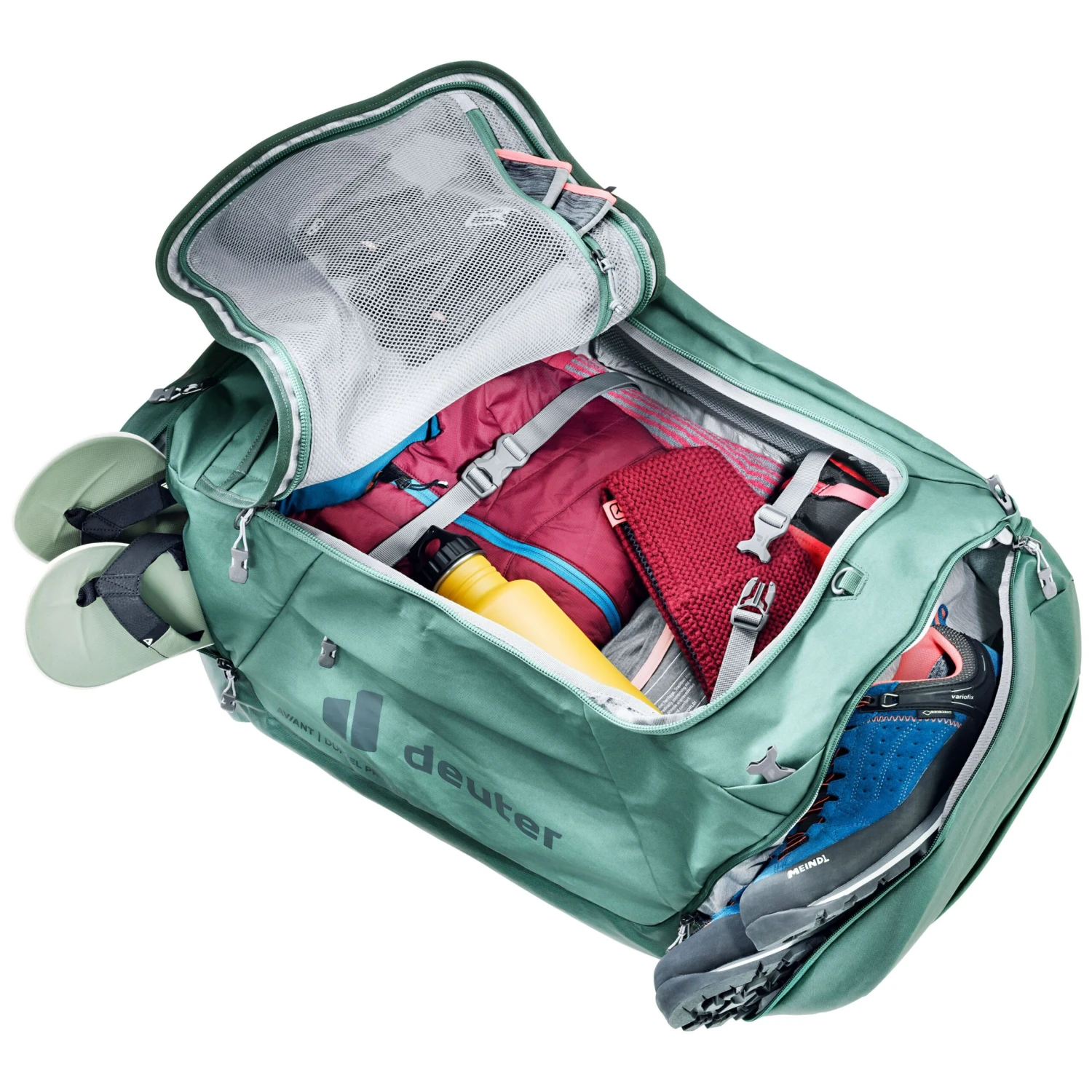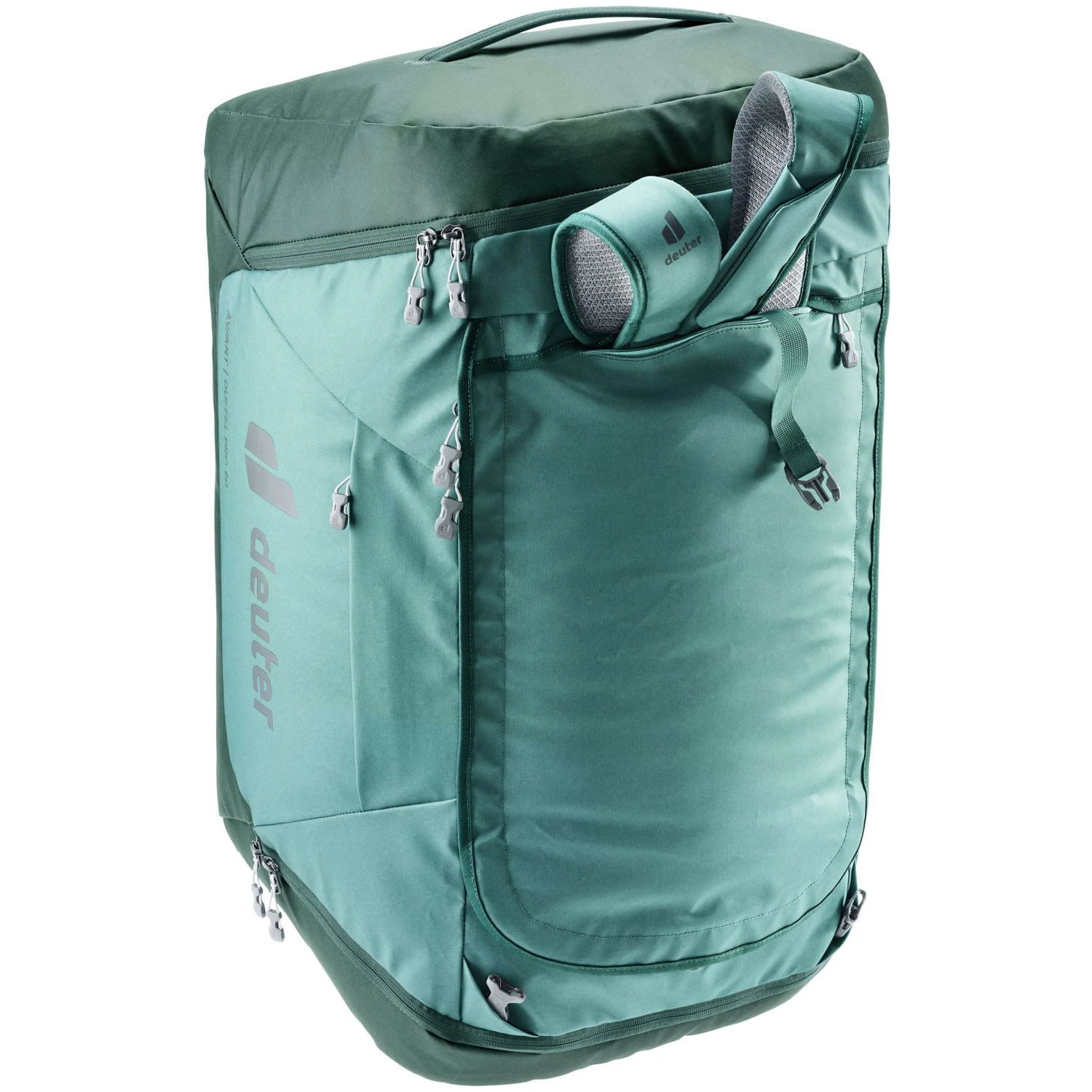 De deuter Aviant Duffel Pro 90 reistas is robuust en gemaakt van waterafstotend zeildoekmateriaal. Dankzij de opbergbare schouderriemen kan deze reistas ook als rugzak fungeren. Het duurzame materiaal beschermt uw bagage tegen stof en vocht. U kunt deze duffel gemakkelijk opvouwen en opbergen in het geïntegreerde buitenvak.