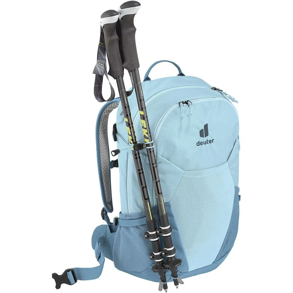 De deuter Futura 21 SL rugzak voor dames is ideaal voor actieve dagtochten. Deze lichtblauwe backpack is speciaal gemaakt voor vrouwen, hierbij is meer rekening gehouden met de lengte van het rugpaneel en de schouderbanden. Ook sluit de heupgordel van deze rugzak beter aan bij vrouwen, waardoor deze backpack een hoog draagcomfort heeft. Ook bevat het rugpaneel het Aircomfort rugsysteem, dit zorgt voor extra ondersteuning tijdens het wandelen en biedt prettige rugventilatie. Om de rugzak compleet te maken, is de tas compleet gemaakt met regenhoes en bevestigingen voor wandelstokken.