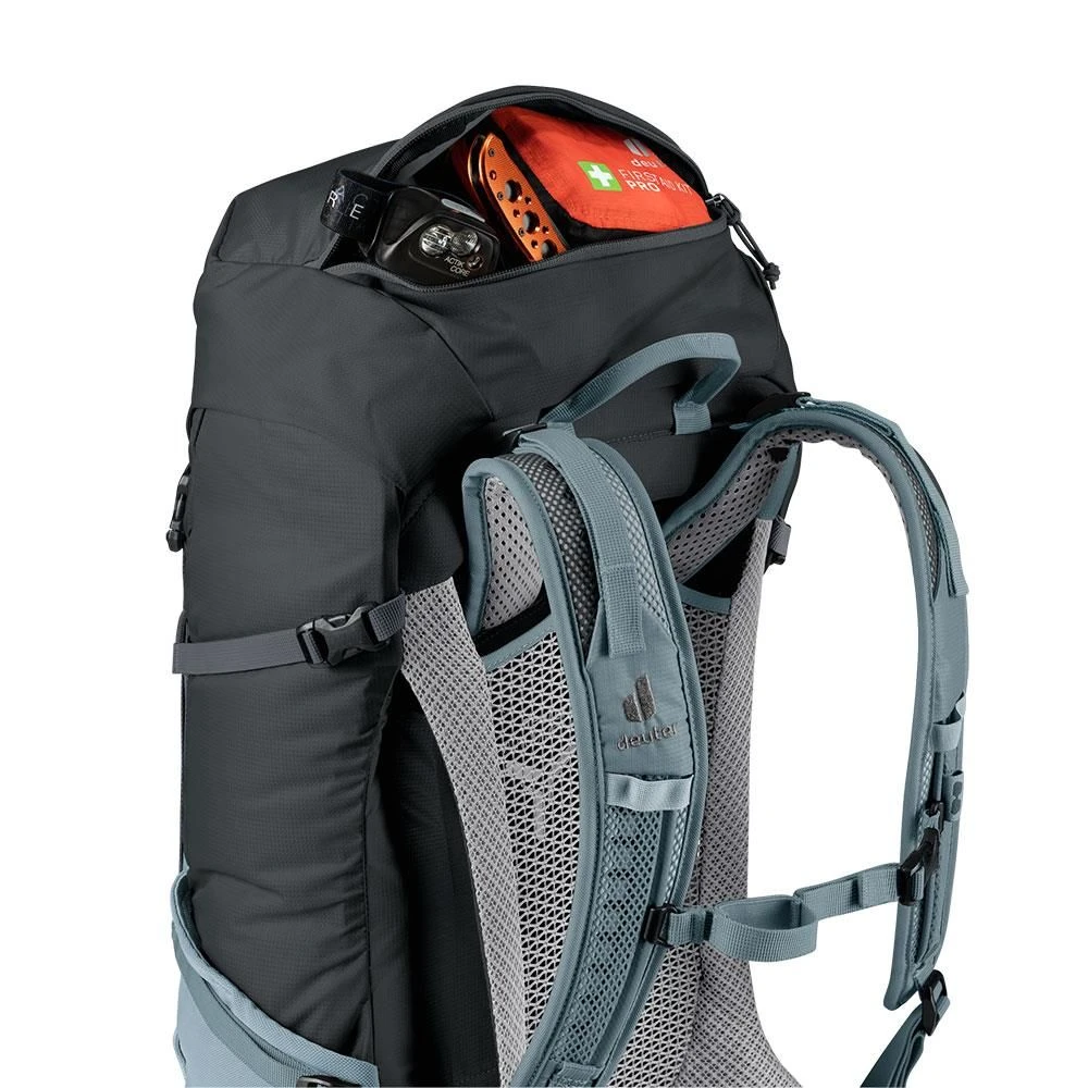 De deuter Futura 32 rugzak is ideaal voor langere dagtochten of meerdaagse wandelingen. Deze lichtgrijze backpack is voorzien van het Aircomfort draagsysteem, dit zorgt voor prettige rugventilatie en een hoog draagcomfort. Daarnaast zijn de schouderbanden van deze rugzak ergonomisch ontwikkeld en zorgt dit voor genoeg bewegingsruimte. De grote opening die aan de voorzijde van de tas zit, zorgt ervoor dat u uw spullen goed in kan pakken en bij al uw spullen kunt. Verder zitten er aan deze tas bevestigingen voor bijvoorbeeld wandelstokken.