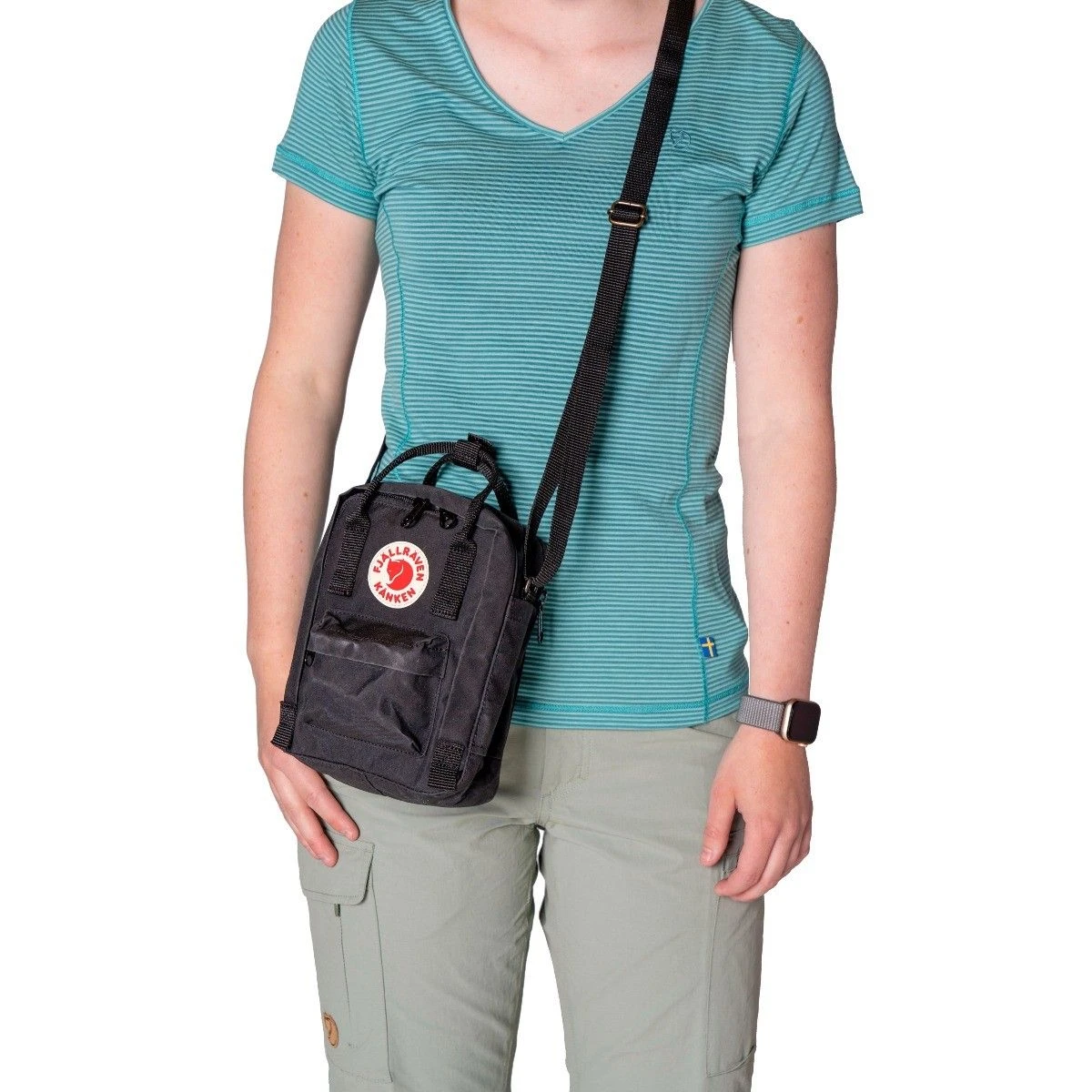 De Fjällräven Kånken Sling schoudertas black is een verkleinde versie van de klassieke Kånken rugzak. De Fjällräven schoudertas heeft een inhoud van 2,5 liter, een hoofdvak voorzien van ritssluiting en een binnenvak. Aan de voorzijde heeft de tas een klein ritsvakje. Het vak aan de achterzijde van de schoudertas is geschikt voor uw telefoon of andere kleine spullen. De tas heeft twee hengsels aan de bovenkant en een verstelbare schouderband. De stof is slijtvast en waterafstotend.