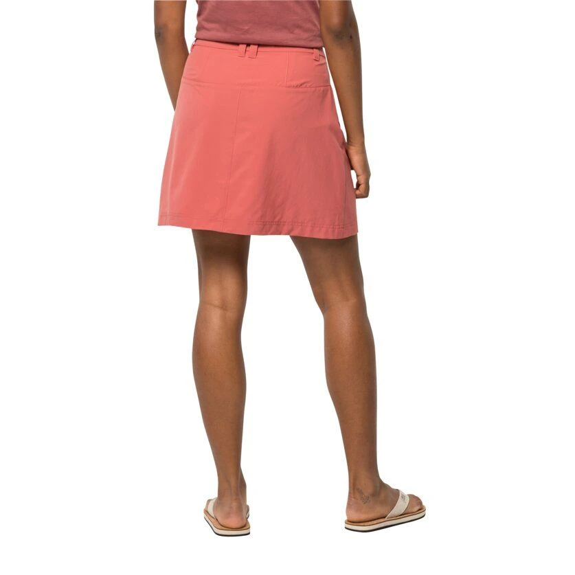 De Jack Wolfskin Sonora skort biedt veel bewegingsvrijheid en is gemaakt van sneldrogende materialen. De skort is een broek en rok in één.