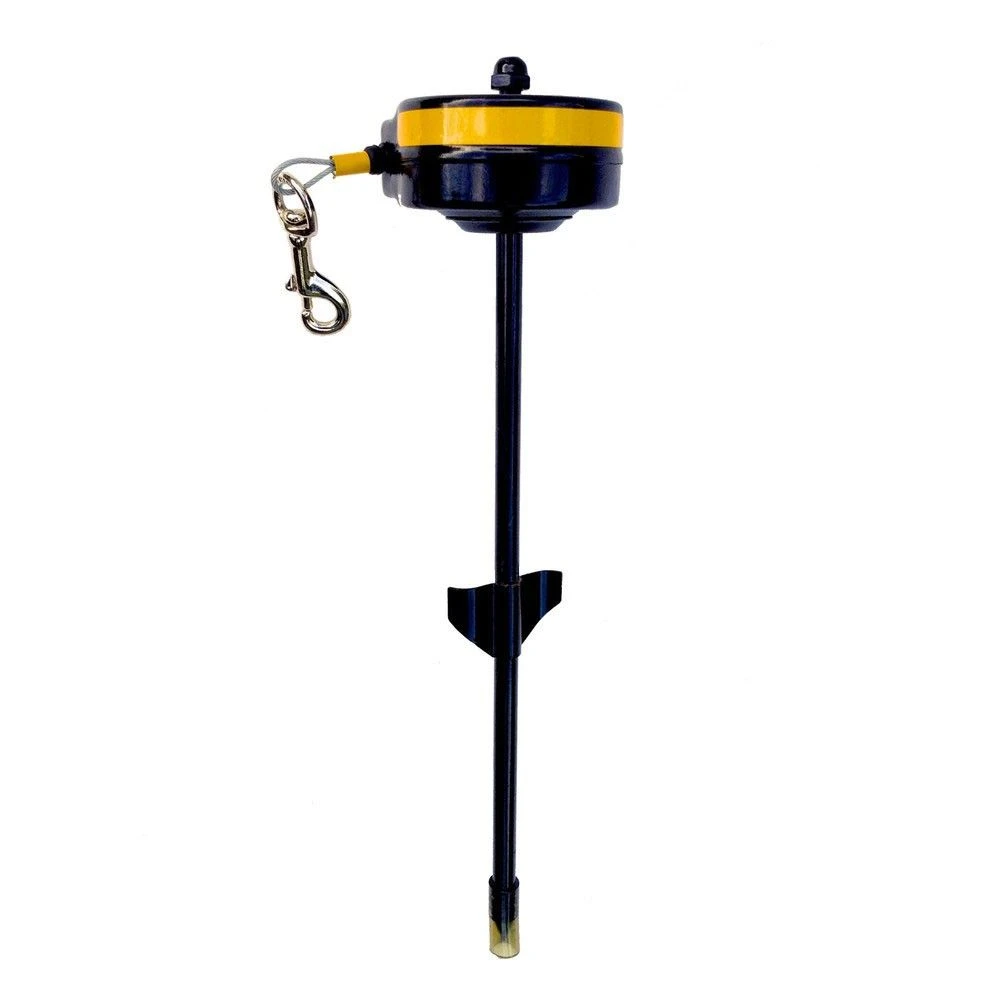 De oprollijn bestaat uit een zware metalen bodempin, met een oprolbare staalkabel die 360° kan roteren. De 4,5 meter lange soepel lopende kabel trekt strak maar blijft comfortabel voor de hond. Dit voorkomt dat de hond zich verstrikt in de lijn. De bodemunit is goed zichtbaar in het donker dankzij de reflecterende rand.